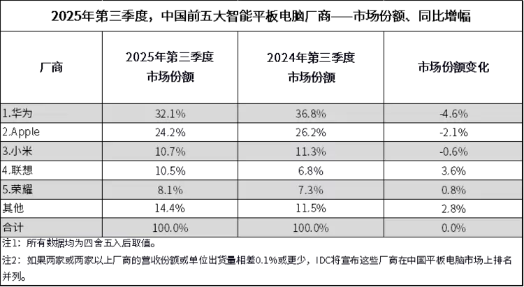 在消费电子圈,销量是检验真理的唯一标准,所有产品的升级都是为了提振销量。在中国平板市场的存量竞争中,大部分厂商还在为了平板电脑的屏幕亮度提升多少尼特、边框窄了多少毫米而“内卷”时,而联想早已看穿了这种低效博弈,直接以AI这记“王炸”,强势开启了行业的新一轮增长。从数据上看,2025Q3联想AI平板也是直接以10.5%的市场占比,3.6%的同比增幅领跑国内平板市场。